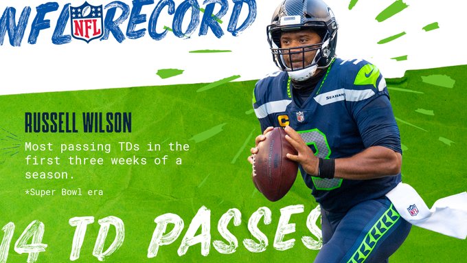 Seattle Seahawks quarterback Russell Wilson discovered this offseason that he hasn’t had a vote for Most Valuable Player, and he’s taken that personally. The Seahawks hosted the Dallas Cowboys in America’s Game of the Week. He did everything but disappoint. Wilson went 27 of 40 for 315 yards, five touchdowns and a 130.7 quarterback rating. He would’ve had a sixth had DK Metcalf not celebrated too early, letting Dallas defender Trevon Diggs punch the ball out for a touchback past Dallas’ endzone. Wilson is the first quarterback in franchise history to throw for five touchdowns in back-to-back games, and he’s the first quarterback in the Super Bowl era to do this:
