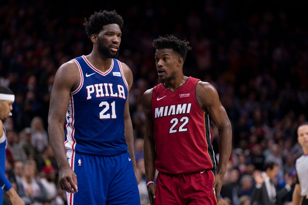 The matchup of Joel Embiid (21, left) and Jimmy Butler (22, right) will be a fun watch all series. Butler has the credentials to shut down this year’s top MVP candidate.
