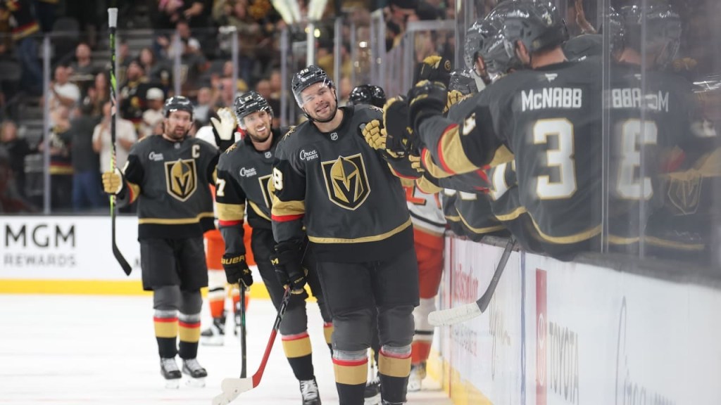 Vegas trading for San Jose forward Tomas Hertl (48, center) last year is paying off this season. His 11 goals make the Golden Knights offense one of the league’s top five units.